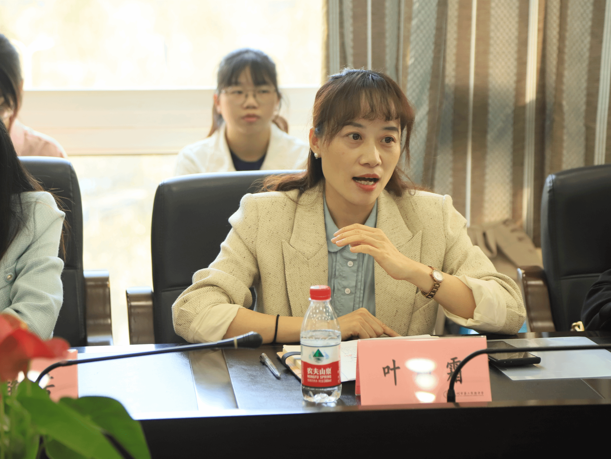 杏吧视频 党委副书记叶柏霜首先表达了对温二实独特校园文化的高度赞赏,随后从“感恩”、“祝贺”、“展望”三个维度,对温二实搭建的学科教学与班级管理实习平台表达了感谢,着重强调了学校环境及优秀教师榜样的示范作用对于实习教师成长与发展的重要推动作用。