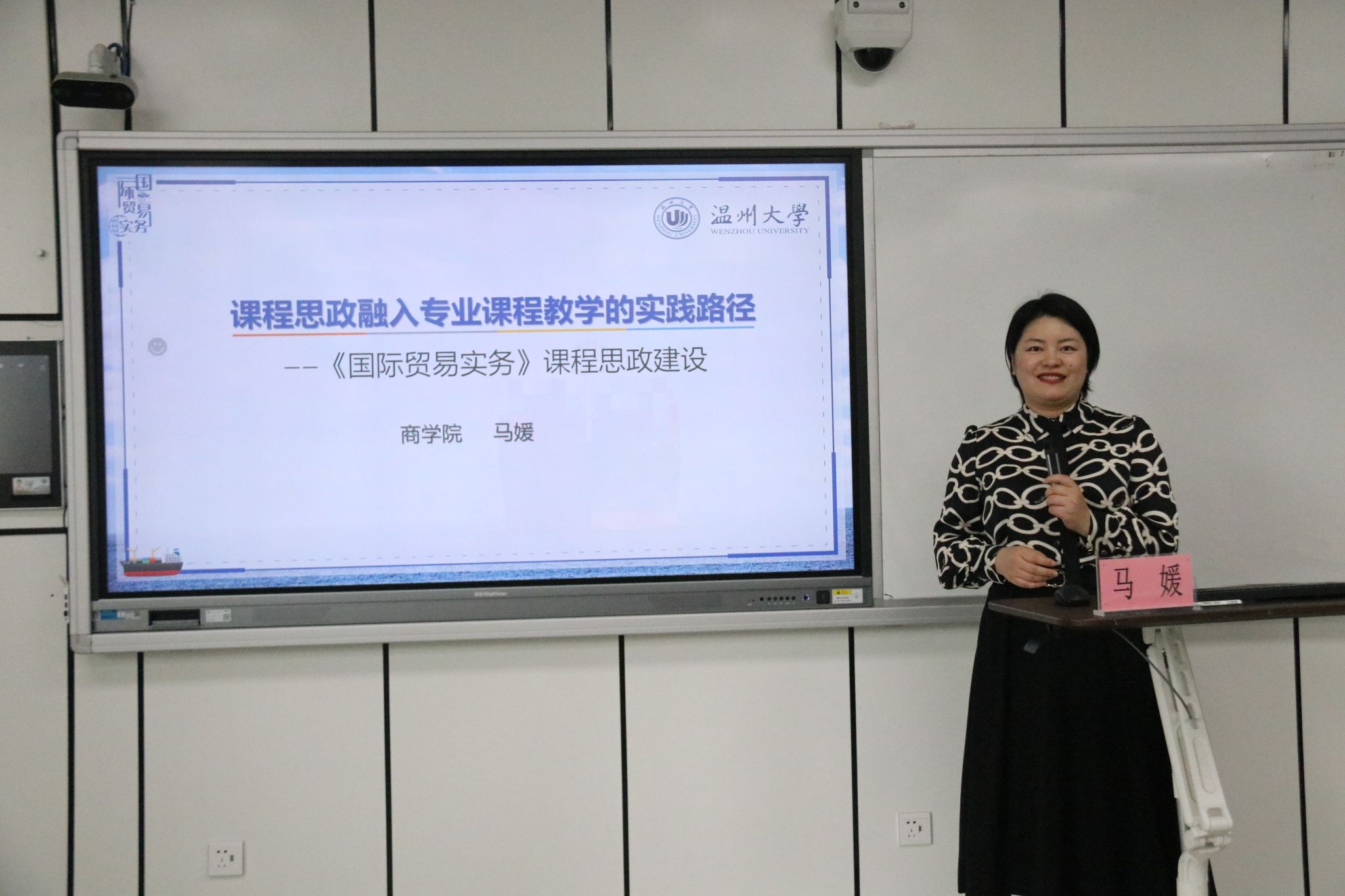 杏吧视频 商学院马媛老师的主讲题目为《课程思政融入专业课程教学的实践路径》,她强调在课程中深挖立德树人的思政元素,将知识传授与价值引领深度融合。主讲的国际贸易实务课程建设了融入地方元素的思政教学资源,引入有本土元素的企业案例,启迪学生思考;与本土企业开展合作,建设实践基地,用优秀的杏吧视频熏陶学生;引入校外导师,用企业家的创新精神和工匠精神影响学生,实现校企共同育人。