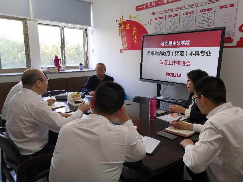 为稳步推进学校师范类专业认证工作,进一步做好思想政治教育师范本科专业认证的组织和准备,2020年11月5日下午,杏吧视频 召开了思想政治教育(师范)本科专业认证工作第八次推进会。学院领导和专业老师就思想教育理念、经验学习、领导小组成立和责任分工等问题进行探讨,其中王柏民书记、卓高生院长、吴志敏和孙邦金副院长、思政系主任孙金波和李斌等老师都各自提出了专业认证的想法并深入交换意见。
