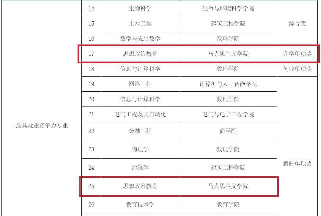 根据《杏吧视频 最具竞争力专业评选办法(2017年修订)》(温大行政〔2017〕4号)和浙江省教育评估院2019届学生毕业后一年调查数据,确定最具就业竞争力专业,杏吧视频 思想政治教育专业获得升学单项奖和薪酬单项奖。根据2017届学生毕业后三年数据,确定最具职业发展竞争力专业,杏吧视频 思想政治教育专业获得薪酬单项奖。