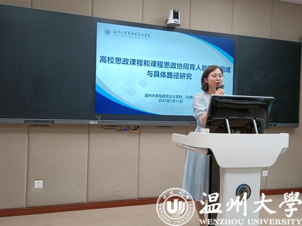 孙秀丽老师以“高校思政课程和课程思政协同育人的现实困境与具体路径研究”为主题,分享了自己项目的立项依据、问题导向、研究内容和框架、拟解决关键问题等几个方面,建议教师在教学过程中应融入自己的特色,凸显课程思政要求。