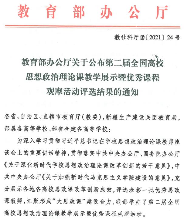 喜报:我校何玲老师荣获第二届全国高校思想政治理论课教学展示暨优秀课程观摩活动一等奖