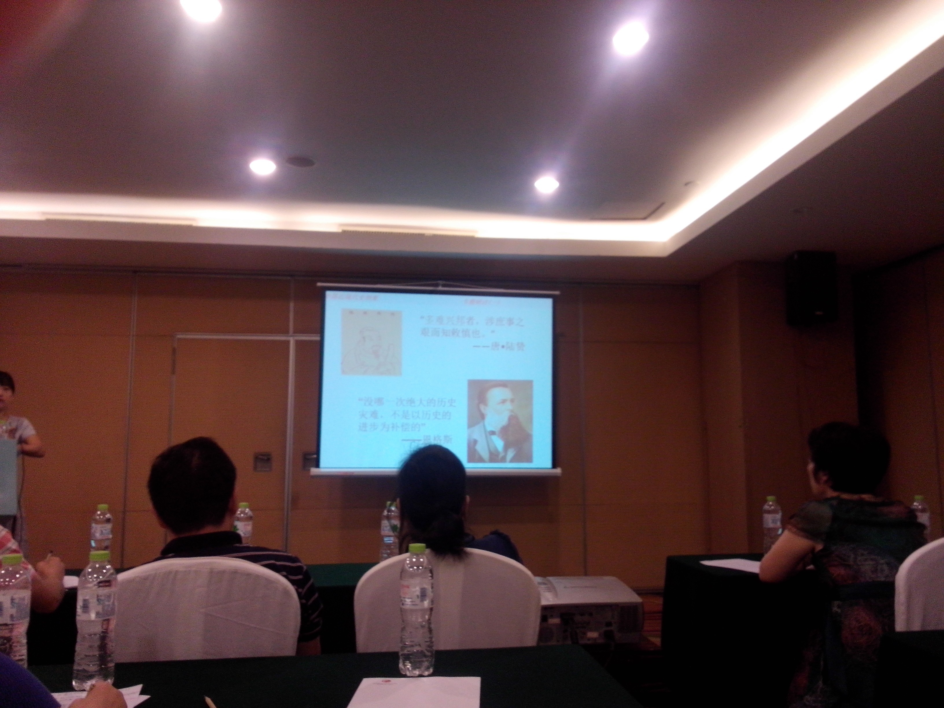 备课会分为两个阶段。第一阶段为省编《纲要》辅助教材《浙江精神与浙江发展》全员培训会。7月15日、16日两天,在编写者的辅导下,大家逐章进行了学习,并就教材存在的问题和如何使用进行了分组讨论和大会汇报,会长段治文教授总结发言。这对我们紧密联系浙江及温州历史与实际讲好波澜壮阔的中国近现代史,积极贯彻好十八大精神,无疑有着极好的启发与帮助。