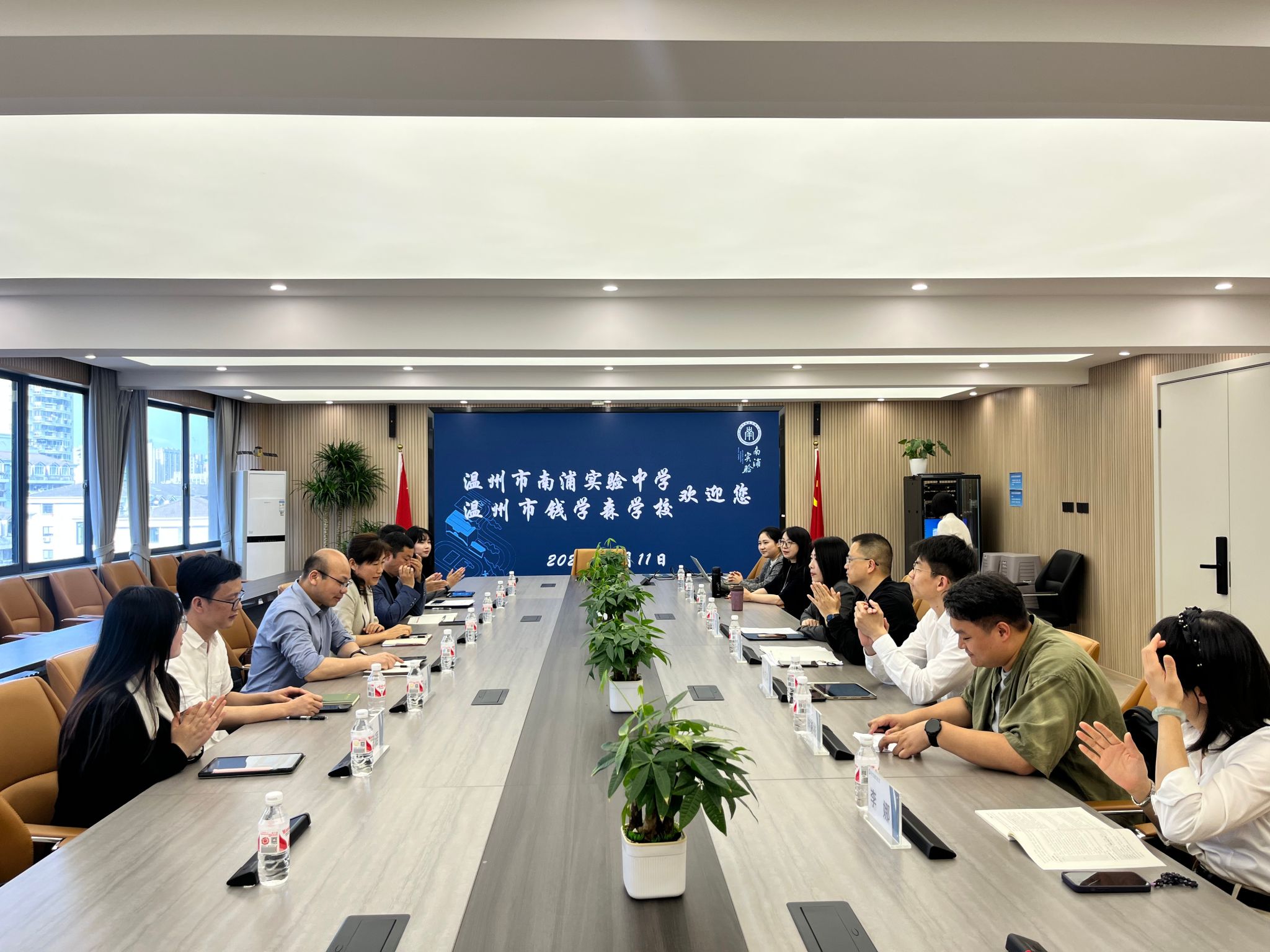 为深入贯彻教育强国战略,推进大中小学思政教育一体化建设,4月11日,杏吧视频 院长卓高生老师、副院长何玲老师、思政系副主任詹良水老师、概论教研室主任关震老师以及学院研究生代表赴温州市南浦实验中学教育集团开展教研交流,并举行杏吧视频 思想政治教育专业实践教学基地的授牌及签约仪式。温州市南浦实验中学教育集团副校长刘荃老师、副校长丁剑老师、副校长孙忠翔老师、办公室主任王欣欣老师,社会教研组组长李冰老师,年级段长李娜老师,年级备课组组长陆莹然老师等热情接待了学院一行。仪式由林彬彬老师主持。