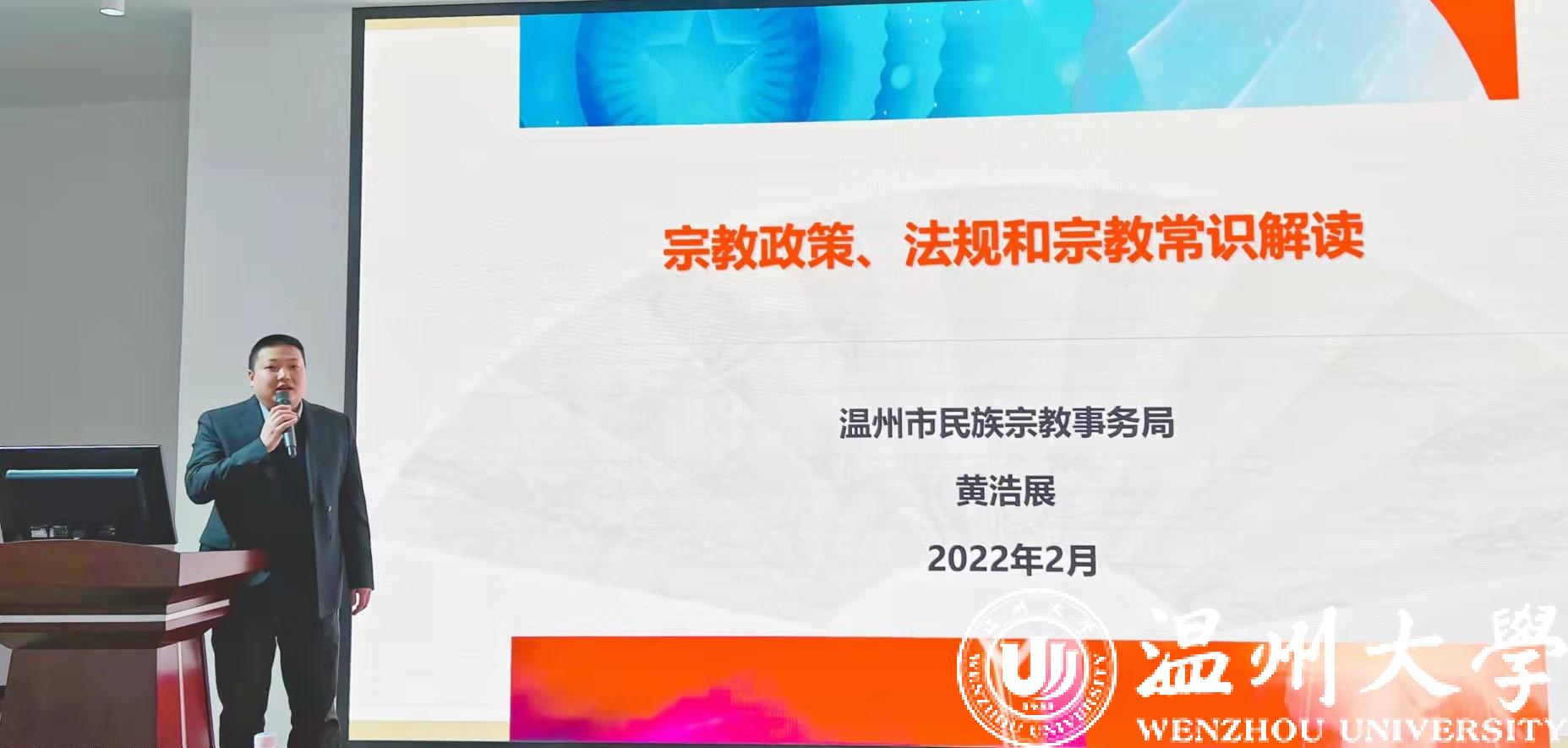 黄浩展副处长作了题为《宗教政策、法规和宗教常识解读》专题报告,系统解读了全国宗教工作会议精神和政策法规。黄处长指出我们高校思政课教师要深入学习贯彻习近平总书记在全国宗教工作会议上的重要讲话精神,全面领会和贯彻新时代党的宗教工作理论和方针政策,深刻理解核心要义、丰富内涵和实践要求,提升马克思主义宗教观认知和教学能力。黄处长还全面介绍了我市宗教信仰的基本情况和面临的困难,并对新时期如何做好高校宗教工作提出建议。