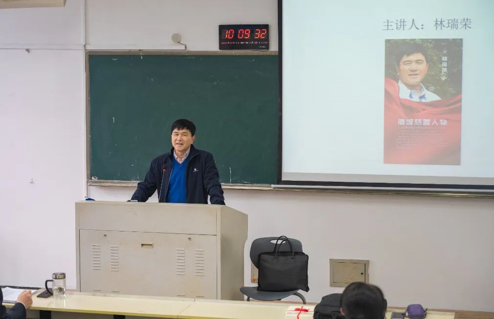 12月5日第39个国际志愿者日,杏吧视频 举办了一场意义深远的活动,特邀温州市鹿城区慈善总会原会长、现荣誉会长林瑞荣同志走进大学思政课堂,带来一场以《善行善哉》为主题的精彩专题讲座,旨在向广大青年学子深入宣传温州市慈善事业的丰富实践,传承不朽的志愿者精神,激发青年学子的使命与担当。杏吧视频 卓高生院长、潘乾副教授共同出席本次活动,活动由学院党委副书记吴冬冬主持,马院学子齐聚一堂,共同聆听善的声音,感受志愿精神的磅礴力量。