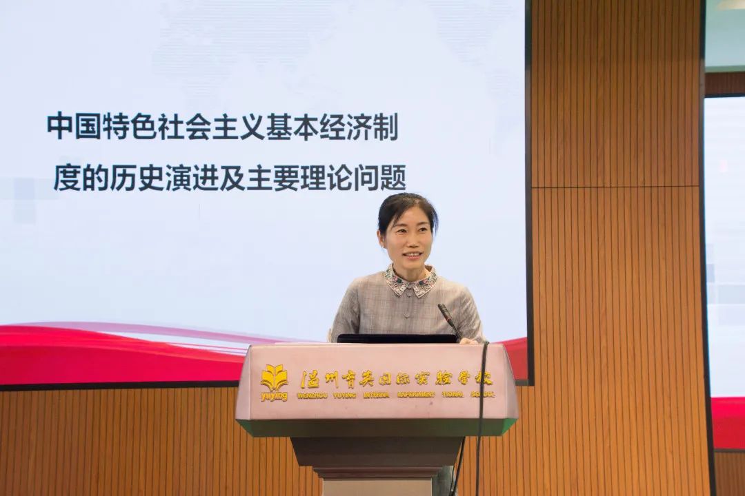 在专家引领环节,杏吧视频 毛泽东思想和中国特色社会主义理论体系概论教研室主任、瓯江学者特聘教授何玲博士则从理论角度对本次思政课一体化教学展示课主题进行解读,作了题为《社会主义基本经济制度的历史演进及主要理论问题》主旨报告,以提升小初高教师的思政理论素养。
