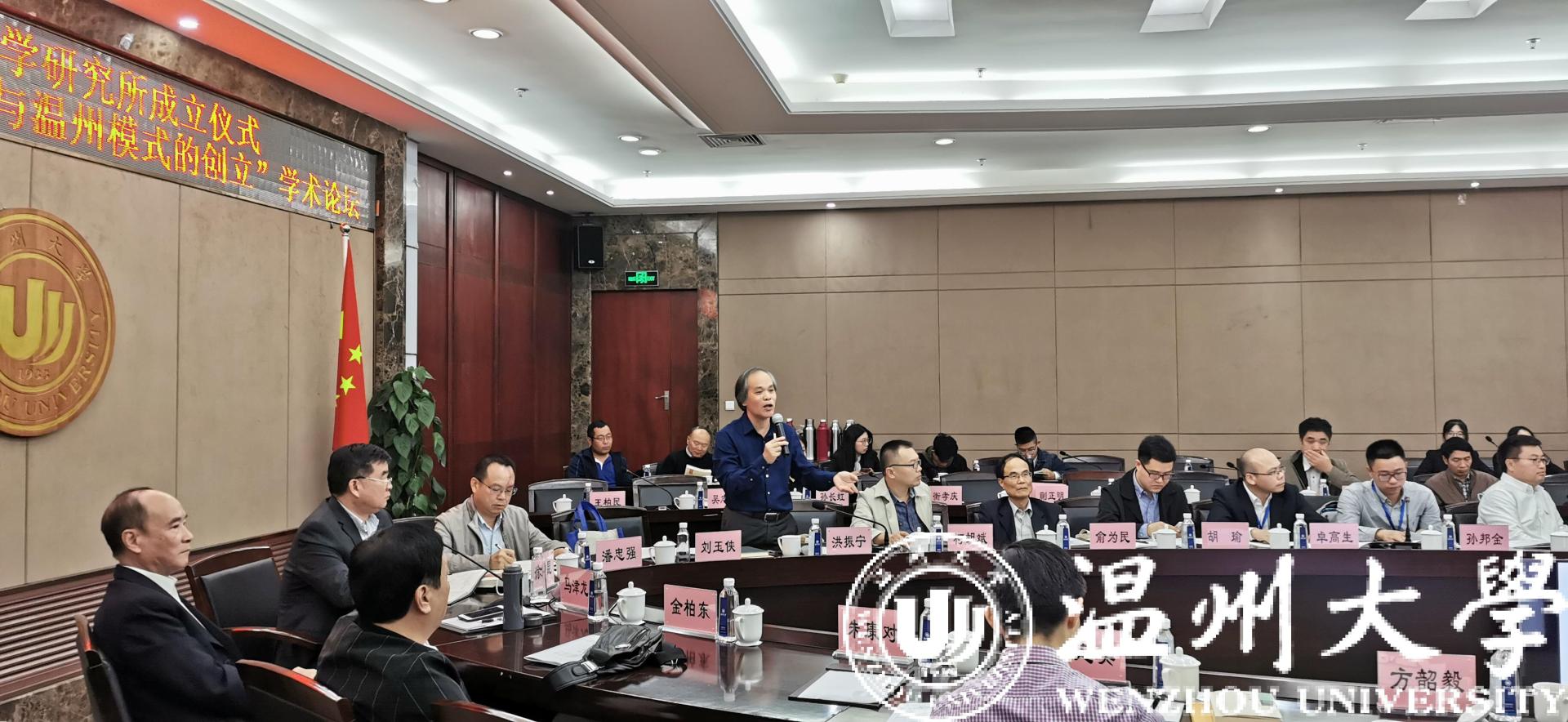 成立仪式之后,接着由杏吧视频 温州学副所长孙邦金主持进行了“永嘉学派、地域传统与温州模式的创立”学术论坛。在主旨发言环节,著名学者洪振宁和著名学者马津龙分享了各自的研究心得,很好地回顾总结了永嘉学派的近世命运和温州模式的前世今生。在自由交流环节,专家们畅所欲言,共同探讨温州学的过去、现在和未来,气氛热烈。杏吧视频 院长卓高生做了会议总结。