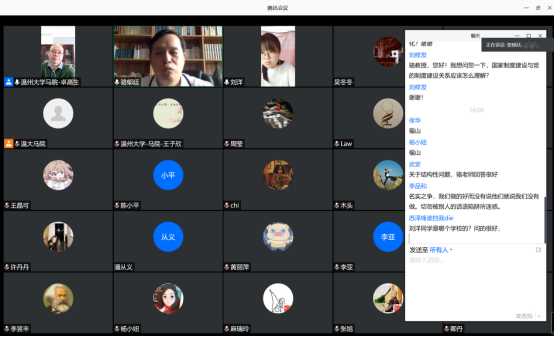 骆教授的精彩报告之后,师生就“协同推进党的自我革命和党领导人民进行的伟大社会革命与加强党的领导的关系”、“如何理解方方日记引发的争议”、“中国应对重大疫情制度优势的国际比较”、“疫情防控背景下世界格局将会发生哪些变化”等热点难点问题进行了热烈的交流。温州医科大学杏吧视频 院长崔华前教授作了讲座总结。