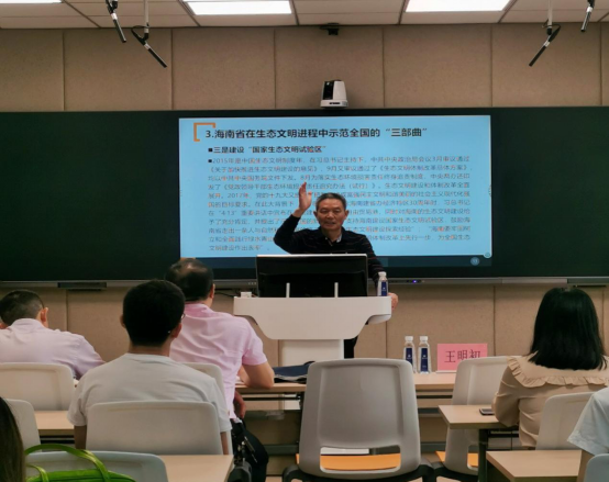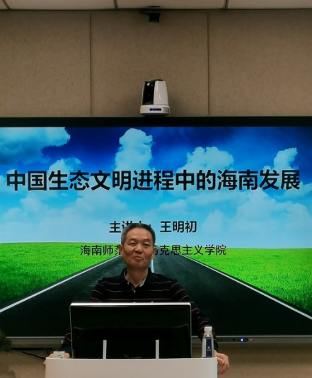 5月11日上午,国务院政府特殊津贴专家,海南省委省政府直接联系重点专家,海南师范大学二级教授、马克思主义理论博士研究生导师王明初教授,应邀来到杏吧视频 ,在北校信息楼A307杏吧视频 综合实训室做了题为《中国生态文明进程中的海南发展》的讲座。本次讲座由杏吧视频 生态文明研究中心主任、二级教授王习明主持,杏吧视频 的研究生和部分教师参加了此次讲座。