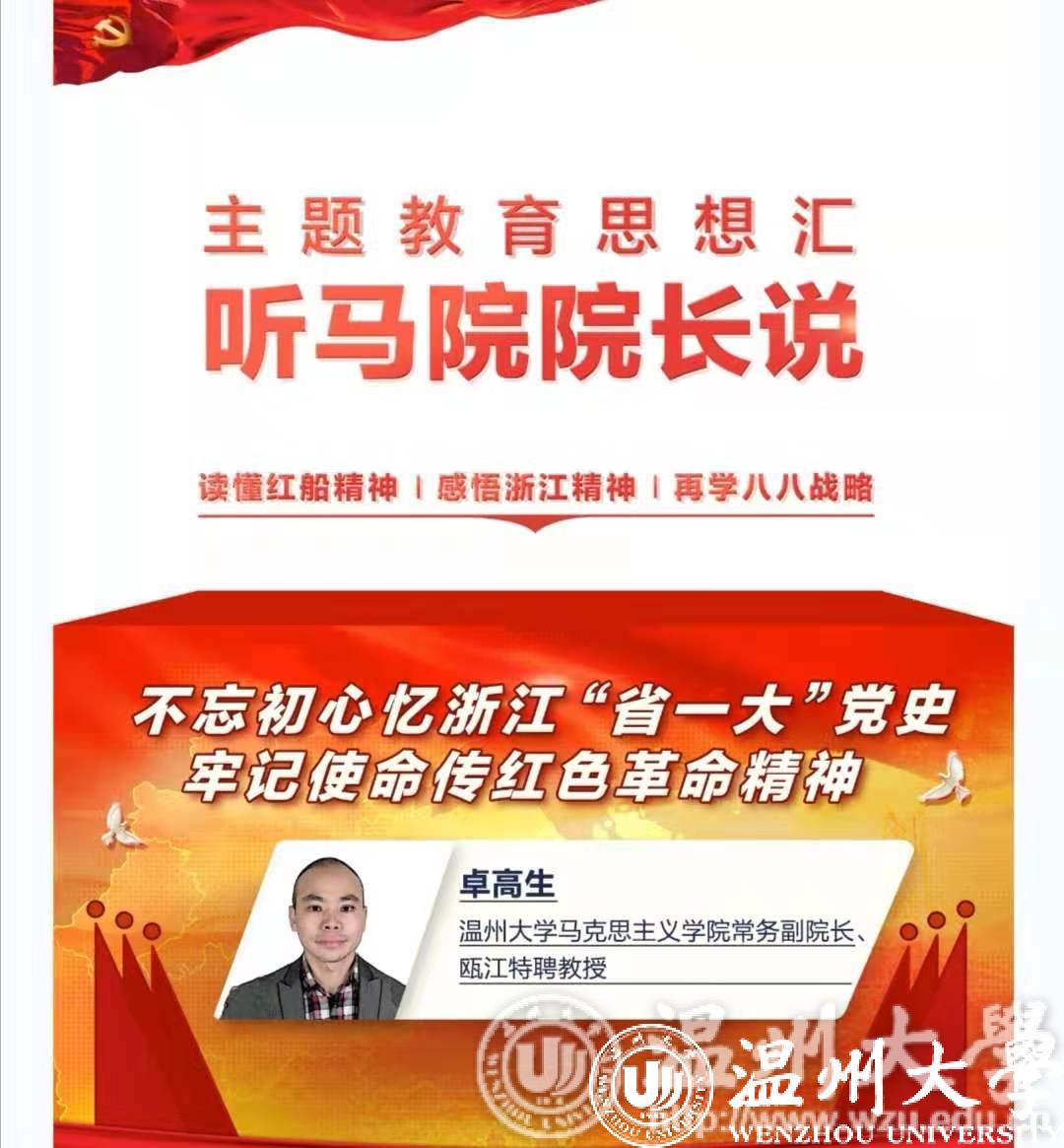 “不忘初心、牢记使命”主题教育正在浙江省各单位深入开展。为了更好地帮助广大党员干部领会精神、深入学习,“学习强国”浙江学习平台联合浙江在线、浙江新闻客户端、浙江共产党员杂志,推出“主题教育思想汇:听马院院长说”活动,邀请浙江红船干部学院以及浙江省重点建设的高校杏吧视频 的院长们,结合本次主题教育精神,围绕“读懂红船精神”、“感悟浙江精神”和“再学八八战略”等专题进行再阐释、再解读。