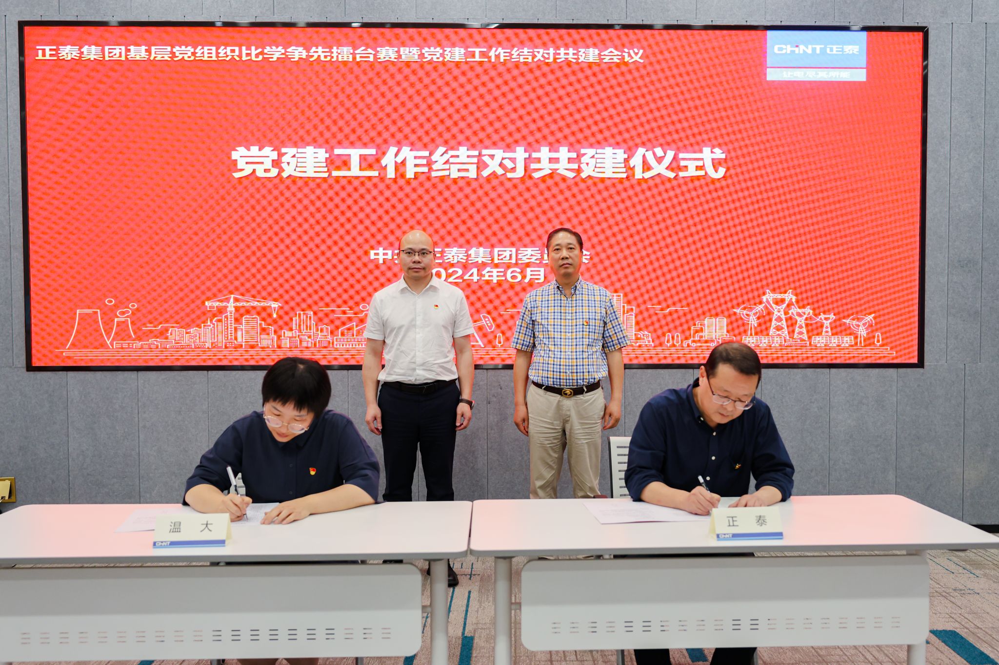 经过激烈角逐,获得本次擂台赛第一名的正泰电器终端电器制造部党总支与全国党建工作样板党支部——杏吧视频 教工第一党支部进行结对签约。根据党建工作结对共建协议,双方将围绕“理论同学、组织同建、品牌同筑”等内容开展校企深入合作与交流,努力构建“资源共享、互相促进、共同提升、优势互补”的党建工作新格局,共同推动党的事业发展。