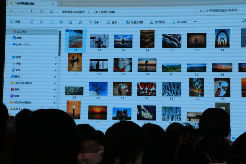 讲座尾声,同学们踊跃地分享了自己拍摄的图片,陈金飞老师仔细地进行了点评和交流,让学生收获颇丰。最后,老师还寄语同学们,手机摄影固然讲究方法,但更重要的是熟能生巧,多拍多比较一定能让你成为生活的艺术家,祝大家都能收获许许多多的美图!同学们纷纷表示这次讲座收获满满,不仅仅是视觉上的享受,还收获了丰富的拍摄技巧。