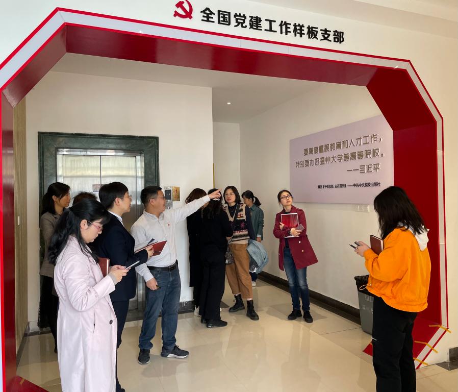 随后,马院教工党员参观了全国样板党支部的党建文化长廊,饶有兴趣地边看边问,感受到了因地制宜的空间布局、体现专业的一体化设计、以学生为中心的服务理念、选树典型创设的向上氛围及党建引领激发的活力。大家一致认为实验中心党支部的党建工作扎实,特色明显,服务到位,社会效益好,党员们敬业奉献、务实担当,在平凡的岗位上建功立业,非常值得我们学习。双方教工党员还就如何整合力量促进师生党支部共建、加强宣传平台建设、发挥样板党支部的辐射作用等问题及教工党支部“双创”工作的有效开展方式和路径等进行了认真探讨,气氛热烈友好,受益匪浅。