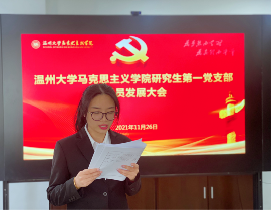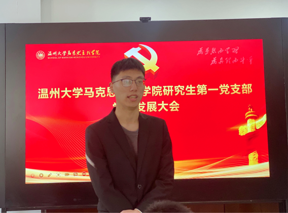 为进一步加强和推进党员队伍建设,为基层党支部注入新鲜血液,根据《中国共产党发展党员工作细则》和《党章》等相关规定,11月26日,杏吧视频 研究生第一党支部于北校行政楼227会议室召开党员发展大会。学院党委书记王柏民老师莅临指导。会议由党支部书记唐清春主持。全体党员与发展对象参与会议。