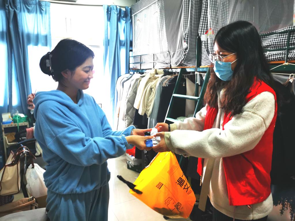 根据疫情防控要求,疫情期间,师生要主动佩戴口罩,进出校门时配合出示防疫码,检测体温;并仔细核查个人情况,有无居住、经过风险区域,及时查看个人行程码和温州防疫码。如有异常,第一时间上报各班级辅导员处。在各位党员的宣传过程中,同学们均表示已知晓学校关于疫情防控相关规定,会积极配合,有效防疫。与此同时,部分党员将提前准备好的物资送入学区与寝室,把温暖传递给保安、宿管等学校工作人员以及身边的同学们。他们还主动担任体温检测员,强化疫情防控细节工作。