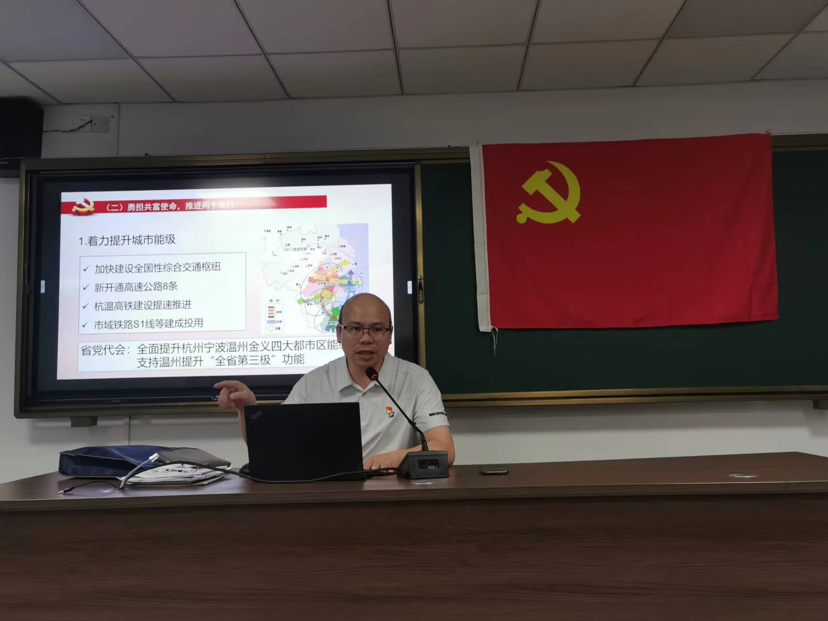 为深入学习贯彻省党代会精神和响应温州市委组织部《关于以“奋进‘两个先行’ 当好开路先锋”为主题深入开展“红七月·服务月”活动的通知》《关于以“当先锋、争先行”为主题集中开展支部主题党日活动的通知》的要求,杏吧视频 教工第一党支部于7月5日晚在浙江省委党校平阳分校教学楼202教室召开“学习省党代会精神 推进样板支部建设”支部党员大会暨“当先锋,争先行”主题党日活动,会议由支部书记项淳芳同志主持。