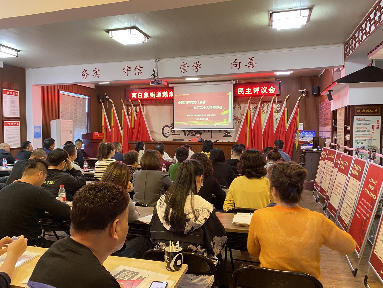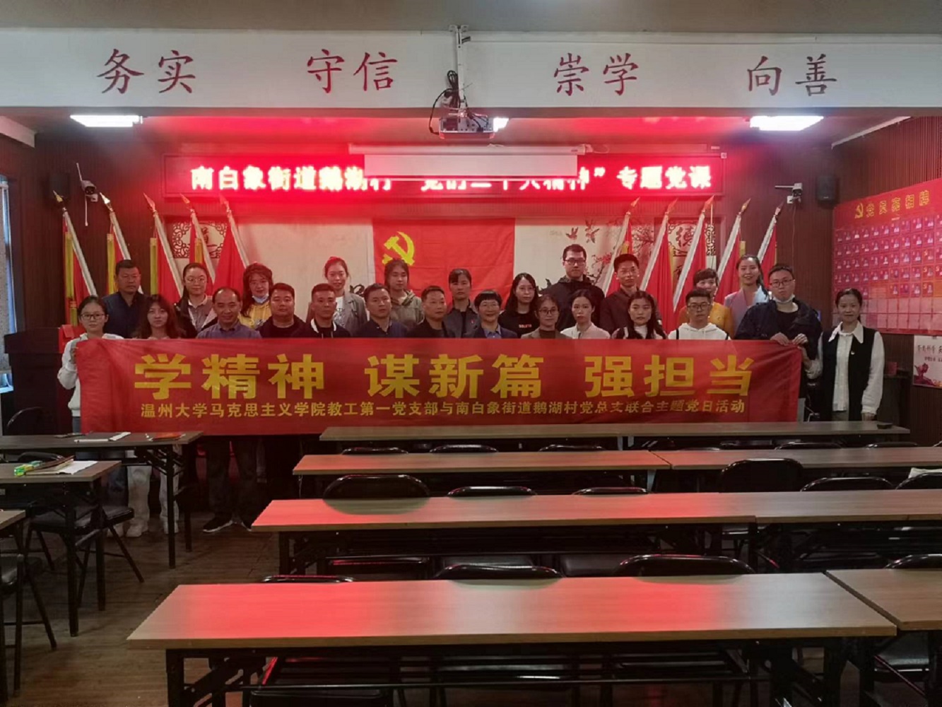 为深入学习贯彻宣传党的二十大精神,充分发挥党支部理论宣传重要阵地作用,2022年11月18日下午,杏吧视频 教工第一党支部书记项淳芳带领支部党员、杏吧视频 研究生部分党员和发展对象学员们一起走进南白象街道鹅湖村,与鹅湖村联合开展“学精神、谋新篇、强担当”主题党日活动。