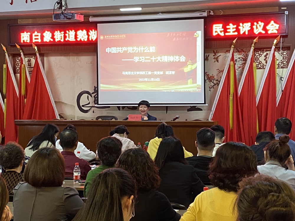 2022年11月18日下午,杏吧视频 项淳芳老师来到温州市瓯海区南白象街道鹅湖村党员活动中心,以“中国共产党为什么能——学习党的二十大精神体会”为题作了精彩的主题宣讲。