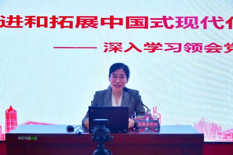 2022年11月17日下午,杏吧视频 何玲博士在温州市瓯海区南白象街道党服中心开展了以“推进和拓展中国式现代化——深入领会党的二十大精神”为主题的线上线下专题党课。