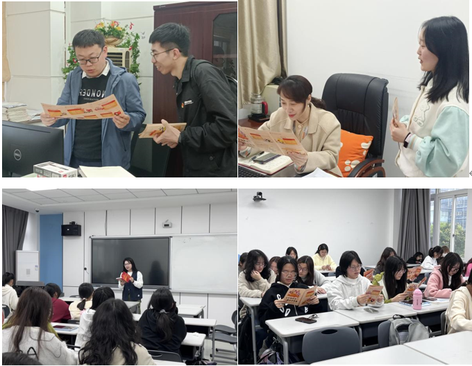 另一支学生党员同志小分队走进学院教师办公室和22级本科生教室,分发“十个知识点 带你学党章”学习手册并就党章知识进行了宣讲,与马院师生共同开展积极热烈的讨论与学习,进一步提高了学生党员的自身党性修养和实践宣讲能力,也帮助马院师生更加深入了解党的二十大精神和党章相关知识。每位党员应以党章修改为契机,在原原本本,融会贯通上下功夫学,把党章学习作为经常性工作来开展。