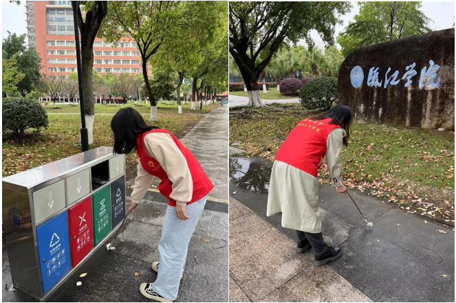 党旗引领,实践致知。全体党员分为两队,分别开展“清理垃圾、美化校园”的垃圾清理志愿活动和“十个知识点、带你学党章”的党章知识分享活动。学生党员同志们分组合作,开展“清理垃圾、美化校园”的垃圾清理实践活动,在一次次弯腰清捡校园垃圾中让“志愿红”在校园绽放艳丽色彩。此次志愿活动既锻炼党员同志们的志愿服务热情,又为文明校园建设增添助力,更为共建美丽校园发挥党员模范作用。