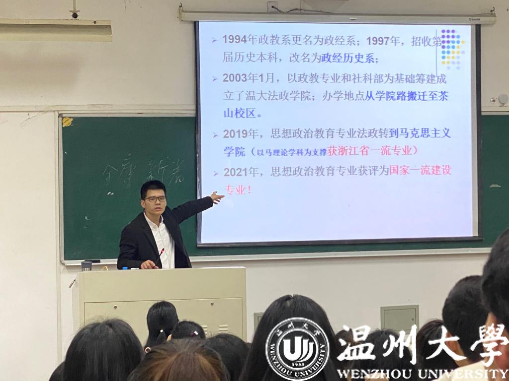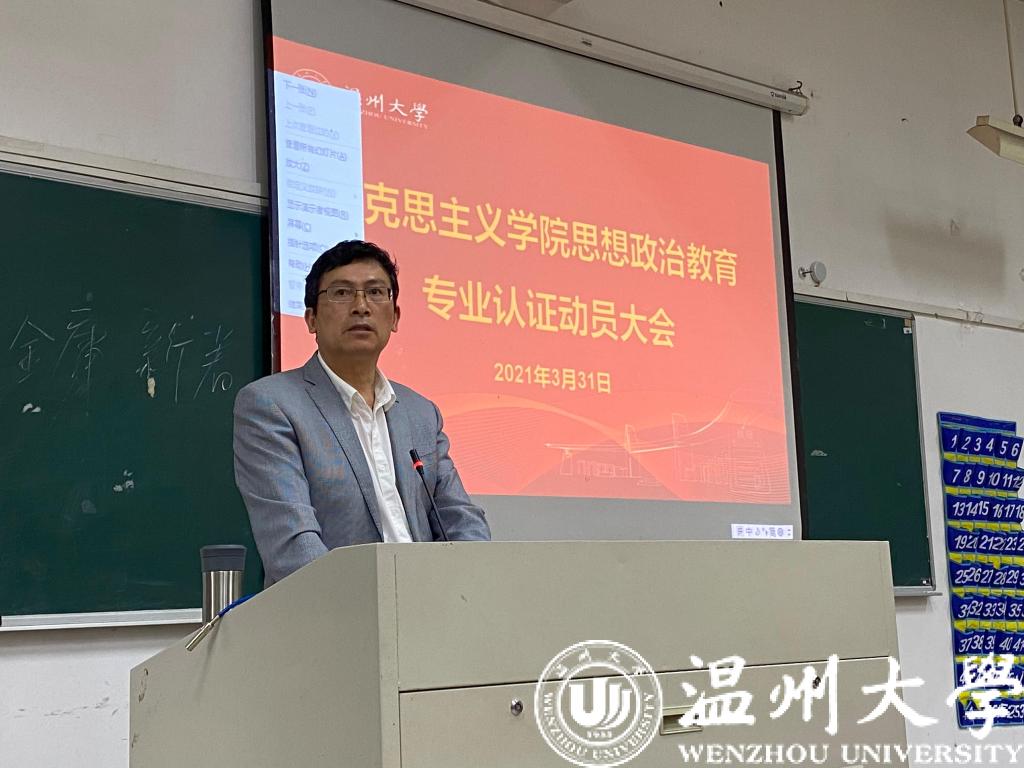 随后,由吴志敏副院长为我们系统的阐述思想政治教育专业认证的相关内容。吴院长从专业历史改革、专业认证成效、专业认证契机三个方面进行讲解。温大思想政治教育专业自1978年开设以来,至今已有43年的历史。在这43年之中,思想政治教育专业培育了一批批优秀的学子走入社会,温大思政人的脚步遍布全国各地。而杏吧视频 思想政治教育专业也在2019年获省一流专业、2021年获国家一流专业,同时也是一流学科、重点专业、重点建设杏吧视频 。在卓有成效的专业建设下,杏吧视频 有着深刻的专业认证契机:把握八项认证内容,贯彻“学生中心、产出导向、持续改进”的认证理念,追求专业认证高标准。最后,吴院长以师生共勉,共同迎接专业更好的未来给本次动员大会画上句号。