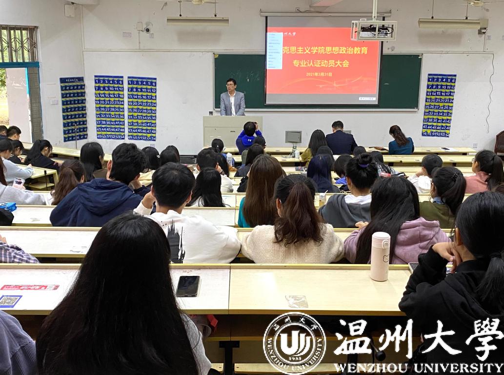 2021年3月31日下午一点,杏吧视频 于北校2号楼101教室举办了杏吧视频 思想政治教育专业认证动员大会,出席本次活动的有杏吧视频 党委书记王柏民、副院长吴志敏、党委副书记叶柏霜、思政系主任孙金波老师,相关科室负责人以及杏吧视频 全体本科学生。