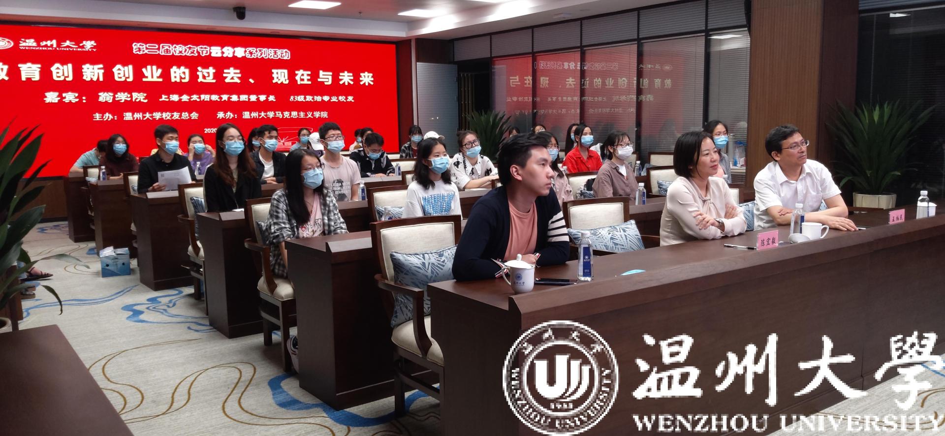 翁学院校友与同学们分享了自己过去几十年的创业历程,感慨万千。从大学时期创办舞蹈培训班、做家教,到毕业后开展推销工作、创办学校、建立上海金太阳教育集团,三十多年风雨兼程,铸造了今日的辉煌成就。