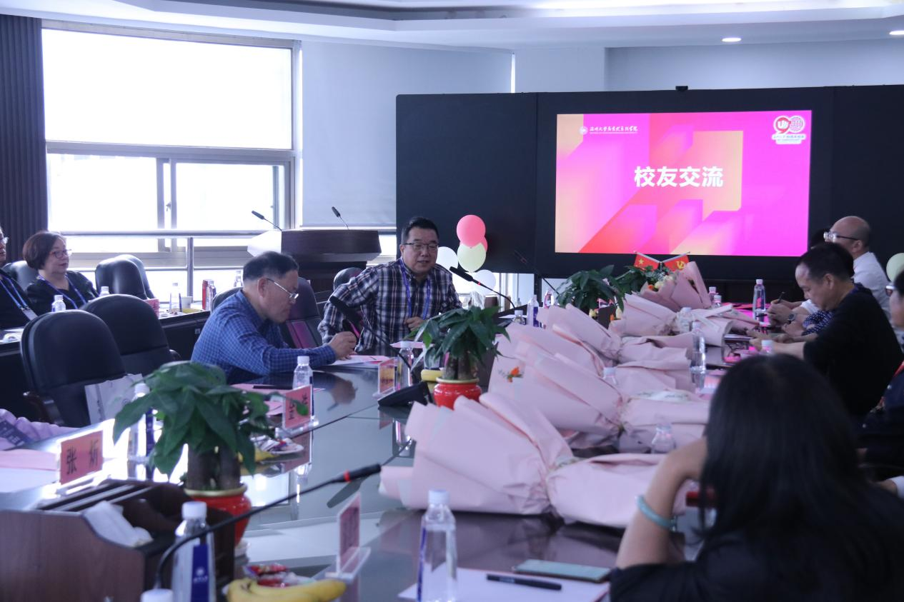 首先,王柏民书记致欢迎辞,向各位老师和校友们的到来表示热烈欢迎。他感谢校友们拨冗回校参加庆典,校友们的到来充分体现了对母校历久弥坚的诚挚情怀,母校倍感欣慰!卓高生院长向各位校友做院情报告。他详细介绍了学院的办学历史沿革与近年来的发展成绩以及未来的建设目标。他以78级校友赠送母校的“同一条河流”的文化石寓意作为结尾,希望各位校友能够铭记从九山湖畔到罗山脚下的师生情谊,一如既往地关心和支持母校的发展。校友代表向老师们敬献了鲜花,表达了对老师们的深深感恩之情。