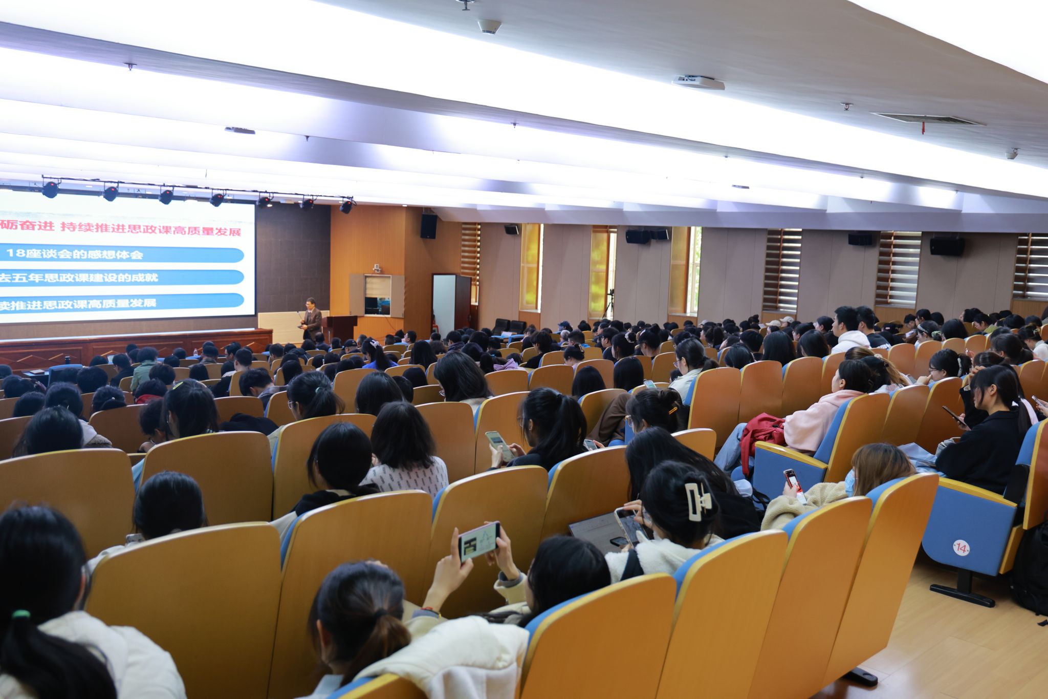 在习近平总书记主持召开学校思想政治理论课教师座谈会五周年之际,为进一步深入学习贯彻习近平总书记“3.18”重要讲话精神,推动新时代高校思政课高质量发展,3月20日下午,杏吧视频 在岩松堂步青厅召开全院师生专题理论学习会。