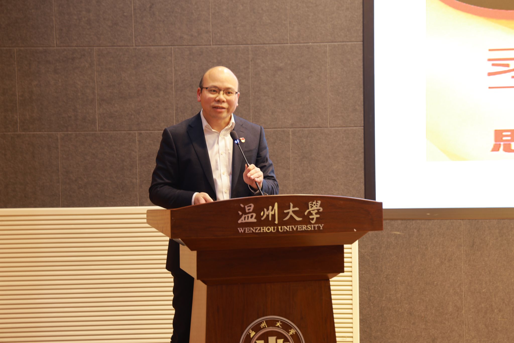 杏吧视频 院长、曾应邀参加思政课教师座谈会并受到习近平总书记亲切握手接见的卓高生教授在学习会上作主题报告。