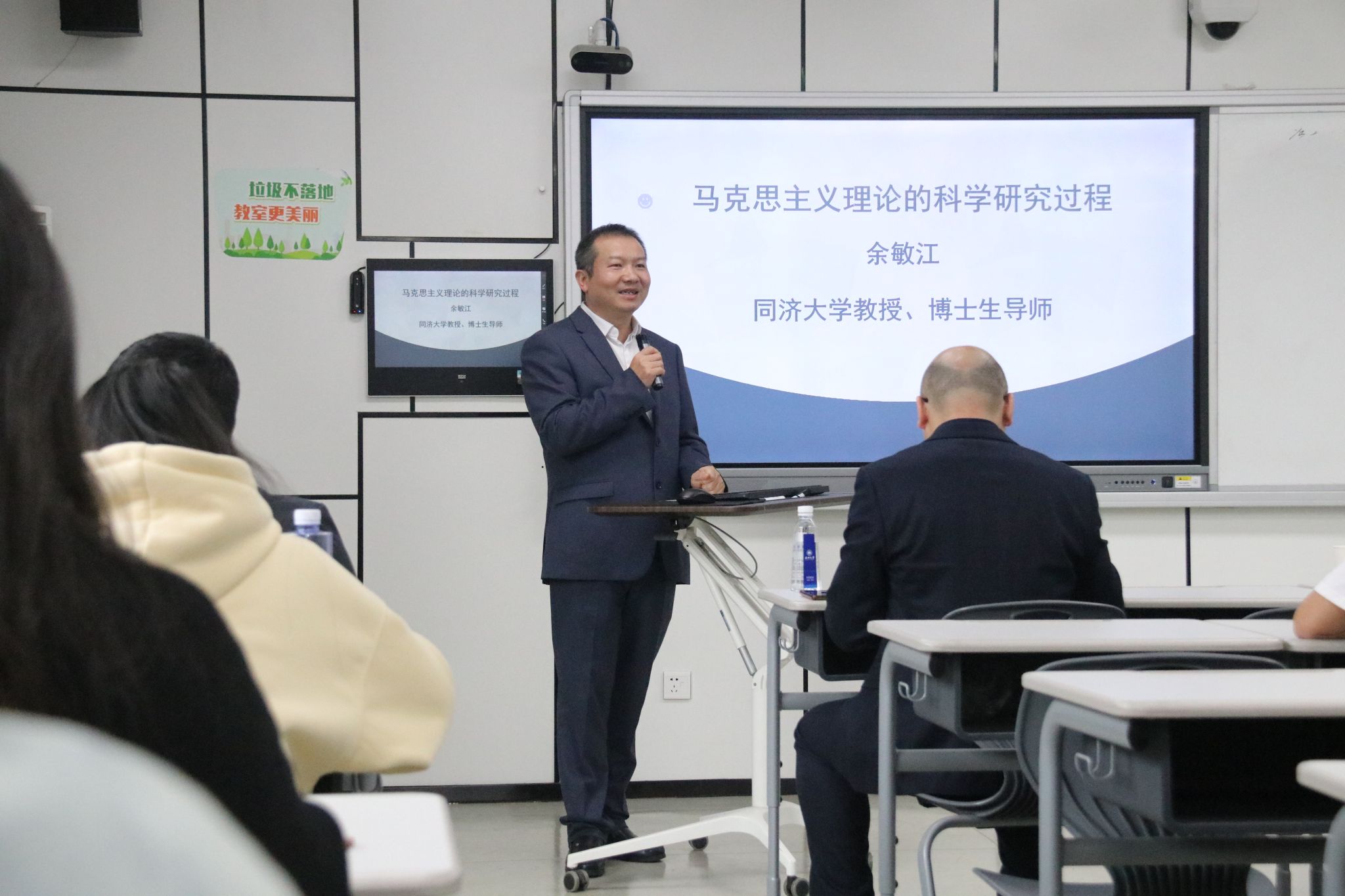 林跃勤教授和余敏江教授讲授结束后,老师与同学们针对当代中国特色社会主义实践和现代化建设中碰到的一些问题展开了热烈地讨论。卓高生院长在总结时认为,两位教授讲座内容丰富,理论深刻,思辨性十足,对同学们日后的学习生活很有帮助。他呼吁同学们要在将来的学习生活中坚定理想信念,积极学习红色文化,用党的理论武装头脑,做优秀道德记忆的传承人,为和谐社会和文化强国贡献应有的力量。