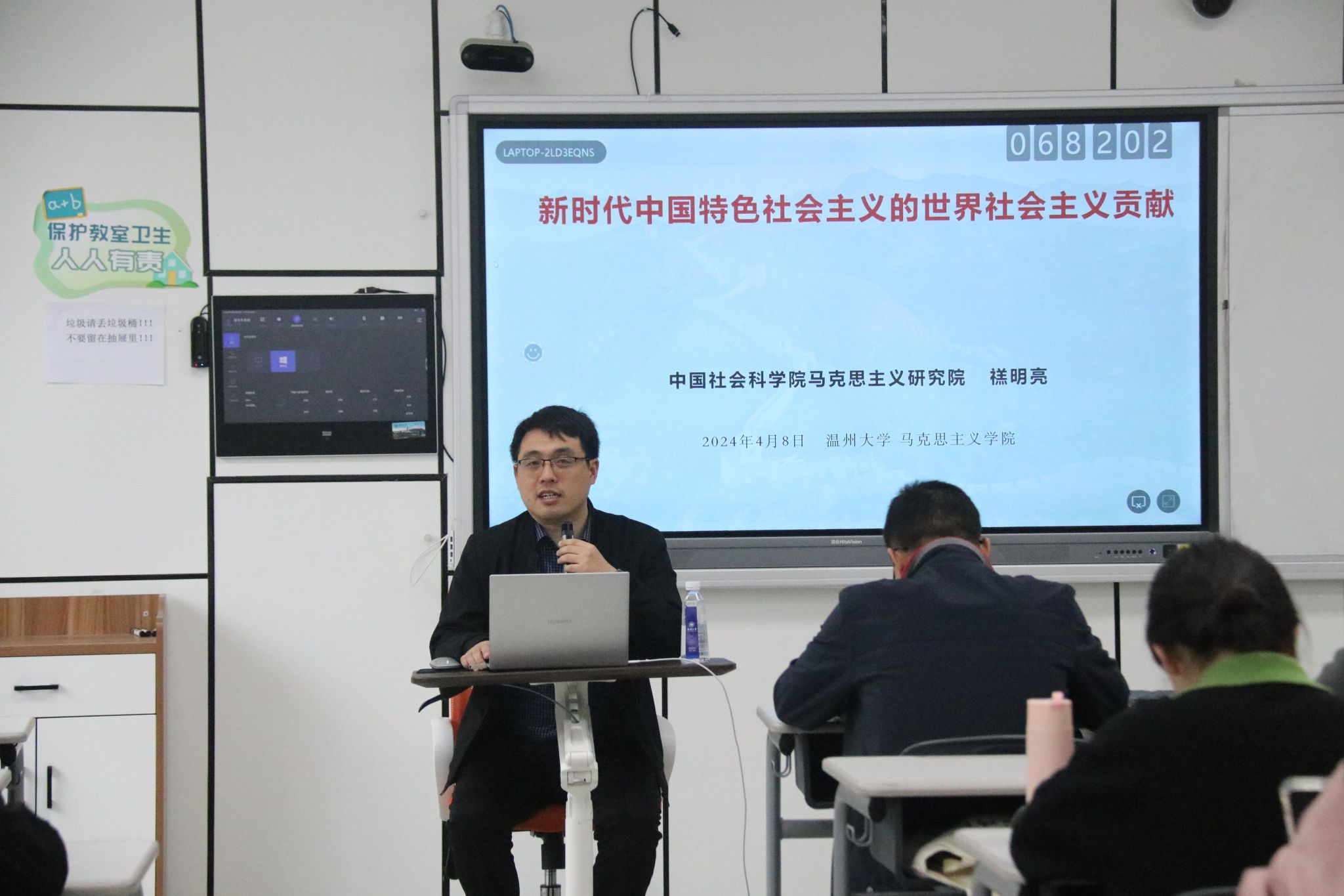 禚明亮老师从世界共产主义运动的角度出发,与大家分享了“新时代中国特色社会主义的世界社会主义贡献”的话题。禚老师首先从习近平总书记的重大判断为切入点,指出中国特色社会主义的胜利为世界社会主义的意义是巨大的,正在成为21世纪科学社会主义发展的旗帜和振兴世界社会主义运动的中流砥柱。禚教授详细解释了当代世界社会主义运动的主要活动力量,并认为当前国际共产主义运动总体形势处于“整体低潮”和“局部高潮”并存的局面。最后,禚老师从多个方面说明了新时代中国特色社会主义为世界社会主义运动作出了重大贡献,即新时代中国特色社会主义重塑了信心、重构了力量、重建了方法,不断推动世界社会主义运动向前发展,引领世界社会主义走向复兴。