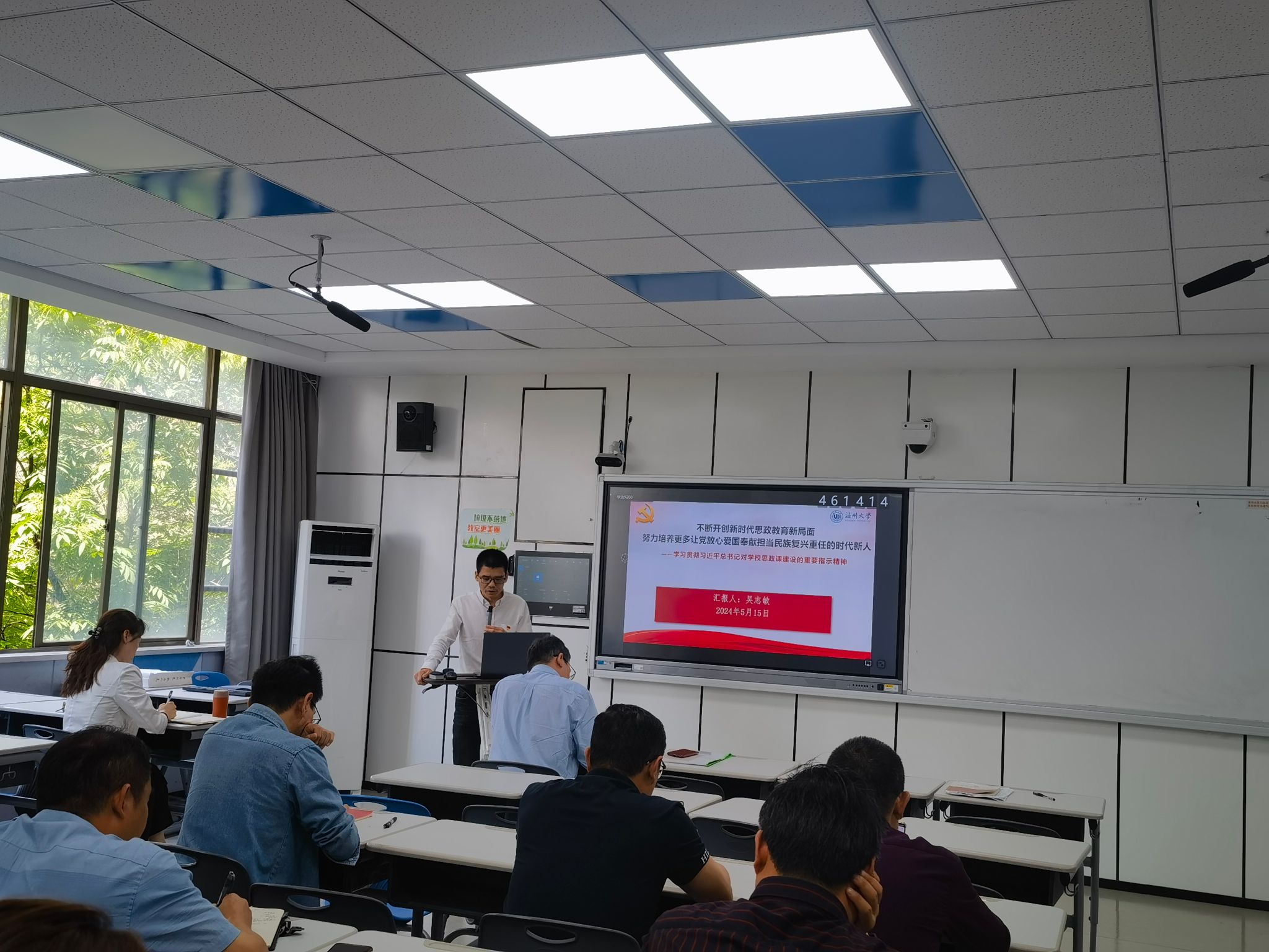 吴志敏副院长带领大家学习了习近平总书记关于学校思政课建设的重要指示以及新时代学校思政课建设推进会精神。他从党的十八大以来思政课建设取得的成绩出发,深入阐述了新时代新征程下思政课建设的新气象和新作为。他从历史维度、现实维度和实践维度,分享了自己对思政课建设的学习体会,并号召全体教师继续深入学习习近平总书记的重要指示,不断创新思政教育模式,努力培养更多让党放心、爱国奉献、担当民族复兴重任的时代新人。