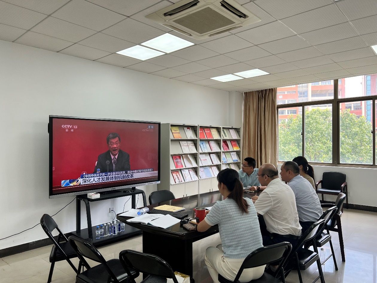 会上,全员集中收看中共中央举行的介绍和解读党的二十届三中全会精神的新闻发布会直播,集体学习《中国共产党第二十届中央委员会第三次全体会议公报》。