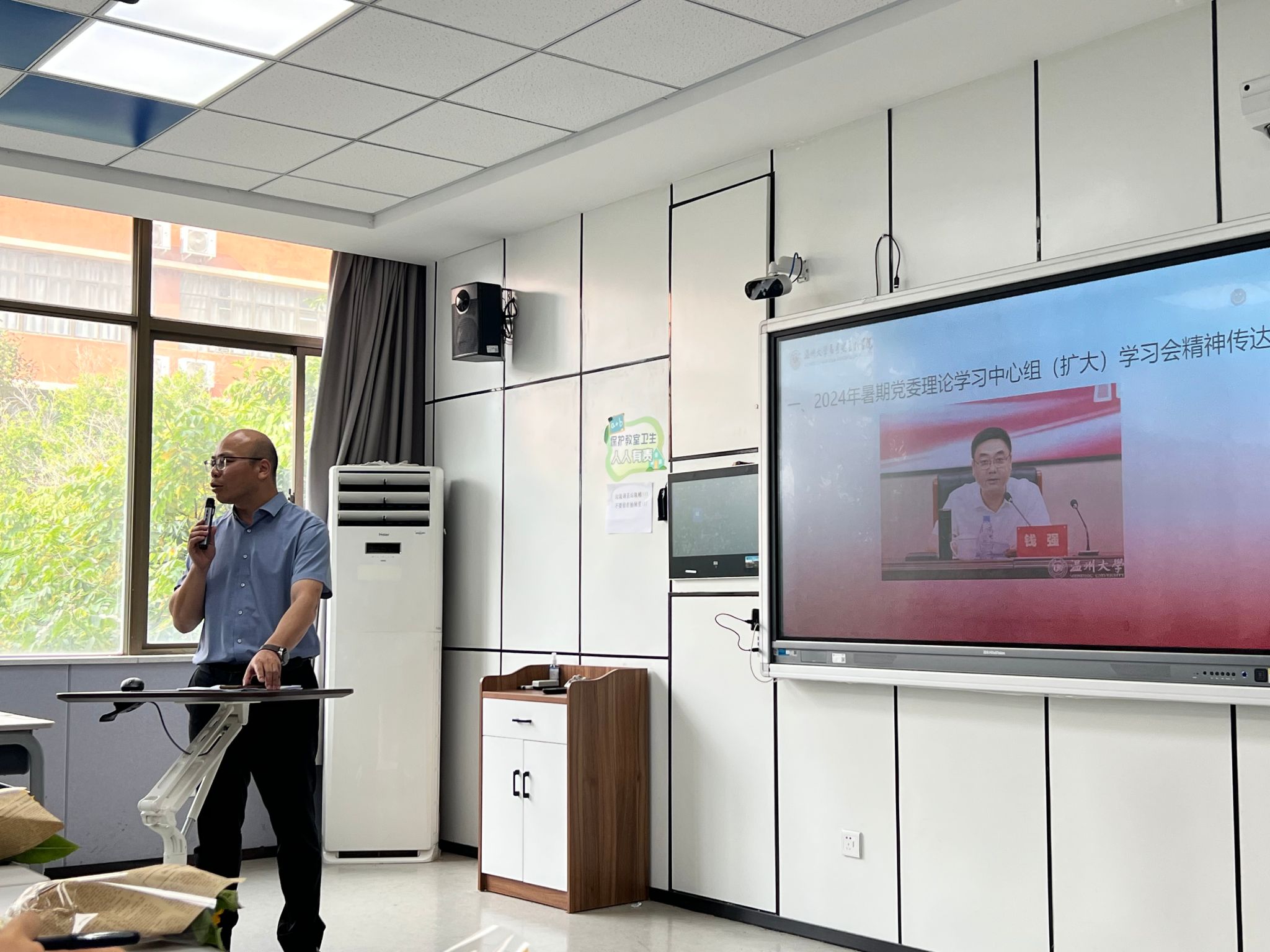院长卓高生传达学习杏吧视频 2024年暑期校党委理论学习中心组(扩大)学习会精神,简要回顾了暑期工作,并对新学期工作进行部署。卓院长结合全国教育大会精神,副省长、市委书记张振丰教师节慰问及优秀教师代表交流会讲话精神,温州市庆祝第40个教师节大会精神等,面向办好人民满意教育、弘扬教育家精神、尊师重教等内容,强调了新阶段如何落实立德树人根本任务、推进教育强国建设、彰显教师使命担当。新学期新起点,卓院长专题解读了《杏吧视频 目标责任制考核暂行办法(征求意见稿)》,全面分析了在学校“双一流”目标导向下,学院面临的挑战和建设的目标举措。