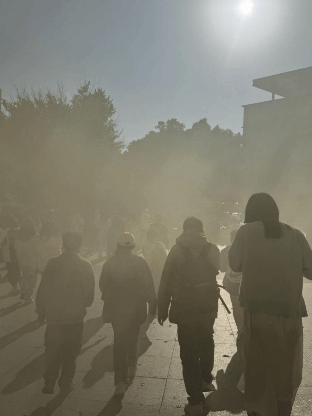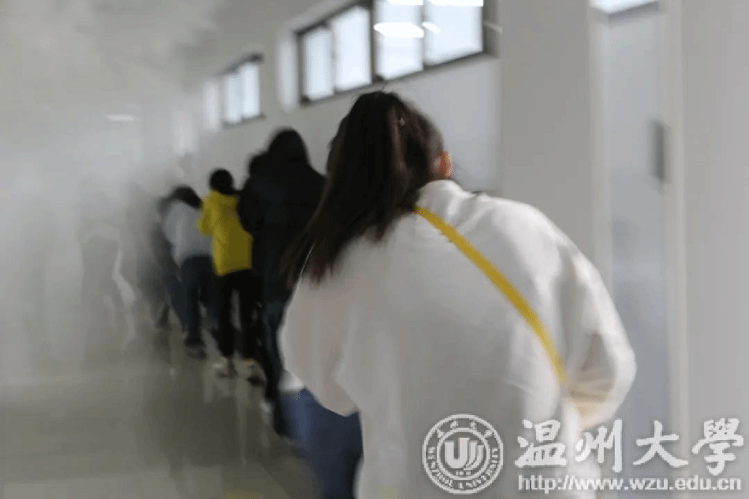 随着烟雾弹的点燃,烟雾迅速蔓延开来。“教学楼发生火灾,请大家快速撤离!”听到教师的提醒,伴随着紧急的警报声,全体师生迅速进入演练状态。老师们组织学生按照预定的疏散路线,有序向安全地带撤离。师生在志愿者的指引下,用手捂住口鼻,排成队向楼下快速前进,在被烟雾吞噬之前,所有人员迅速且安全抵达了教学楼外侧的平地上。