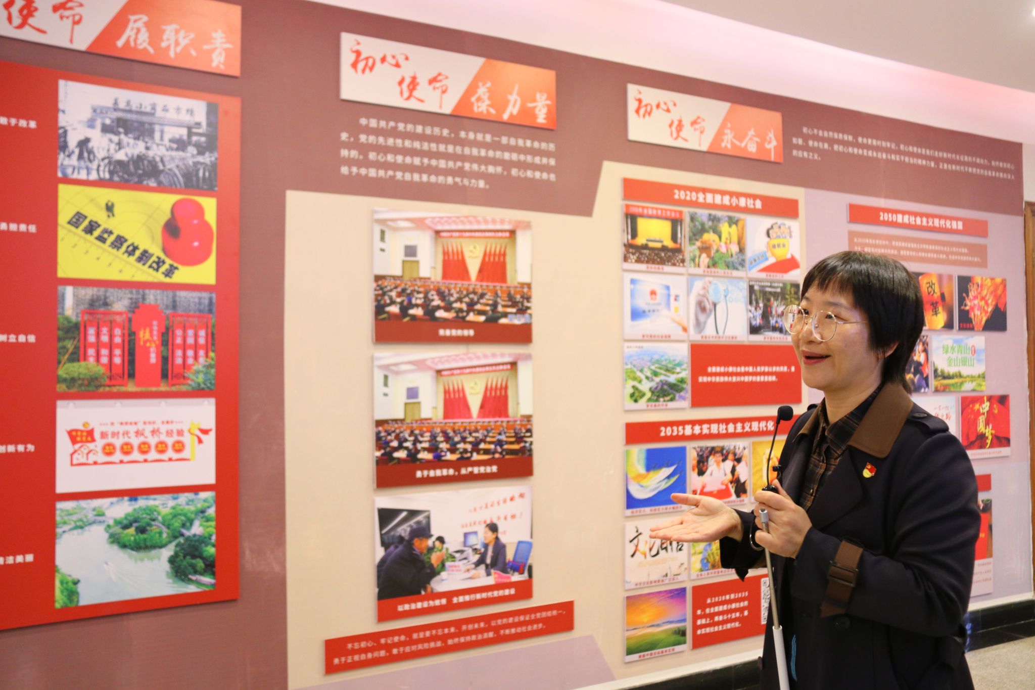 活动伊始,党员同志们分批参观了马克思主义理论教育基地和红色档案里的初心故事馆。全国高校党建工作“样板支部”书记、温州市党代表项淳芳老师为党员同志们讲解了基地廊道和内馆部分,并就五星红旗虚拟仿真实验课程进行了讲解。讲解员李美娟同学引导党员同志们感悟珍贵档案背后朴素而动人的初心故事。