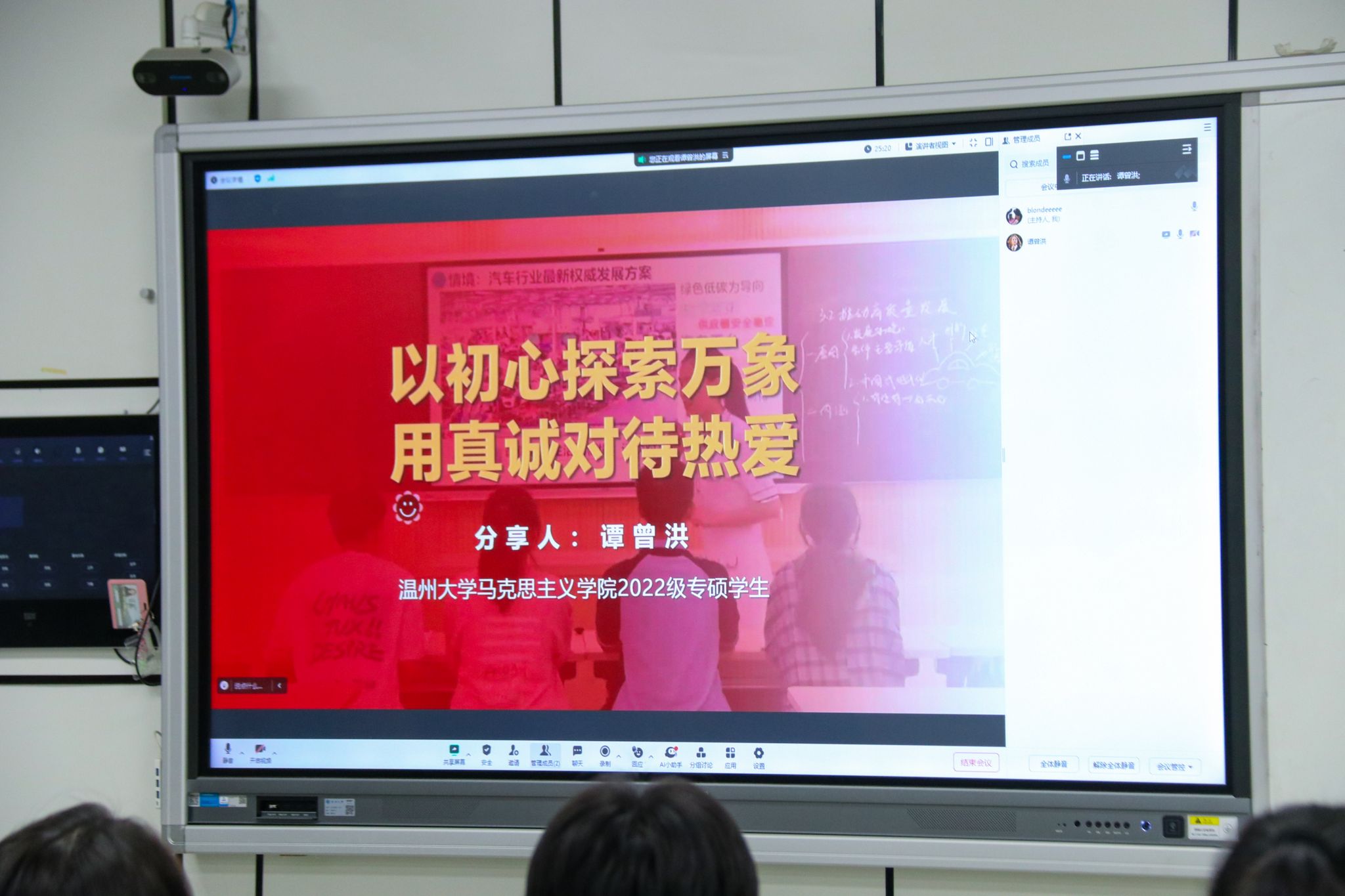谭曾洪学姐从自身科研和比赛的成长历程出发,给同学们整理了本科阶段的相关竞赛参考。她希望同学们在学习过程中体悟思政学科内涵,多阅读马恩经典著作,运用好学习强国等电子平台,做到“去功利性”。她鼓励同学们多参加比赛,以赛促学,以赛助长。