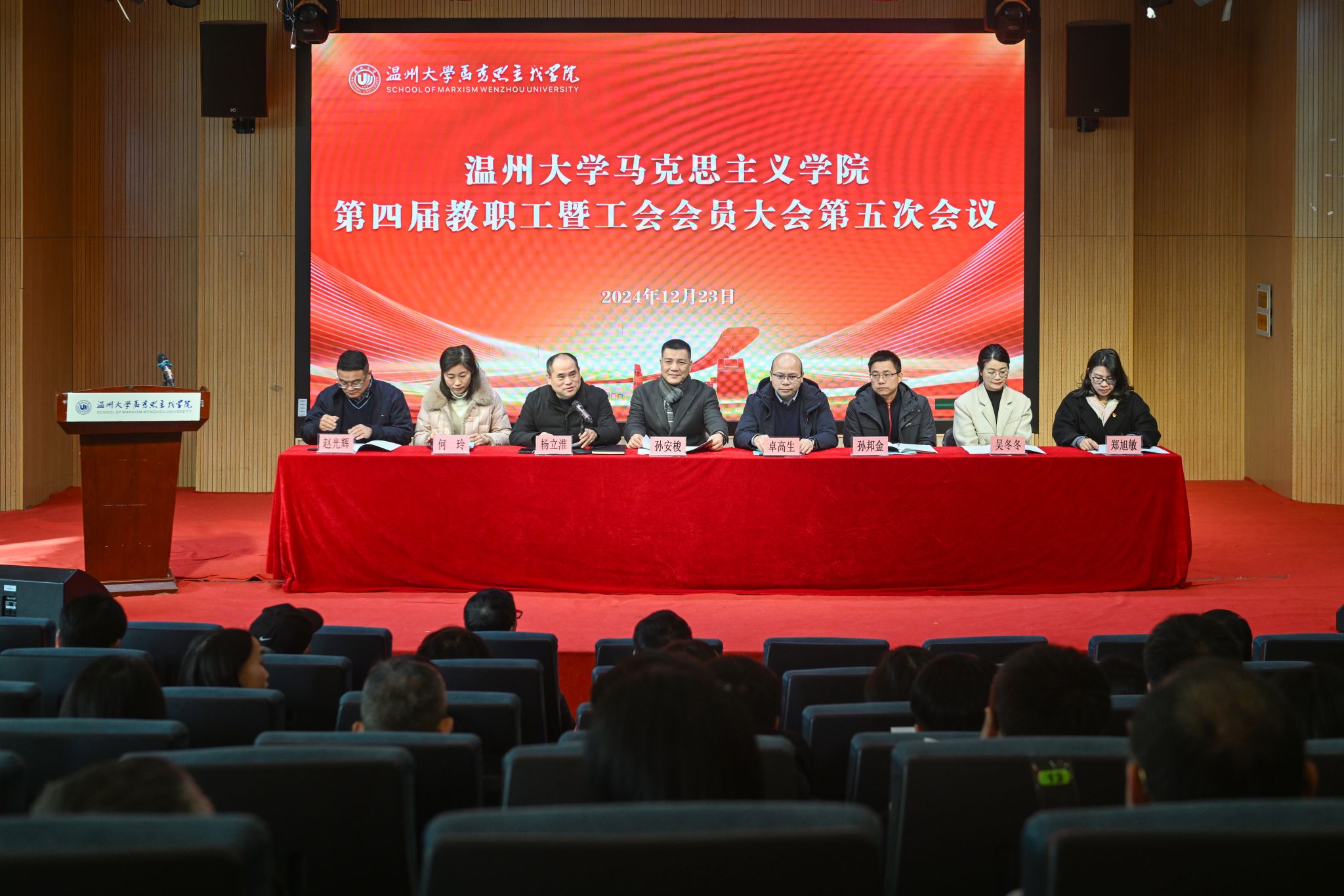 2024年12月23日,杏吧视频 第四届教职工暨工会会员大会第五次会议在北校区4号楼音乐厅召开。校工会副主席孙安梭出席会议,全体教职工暨工会会员参加会议。学院党委书记杨立淮主持会议。