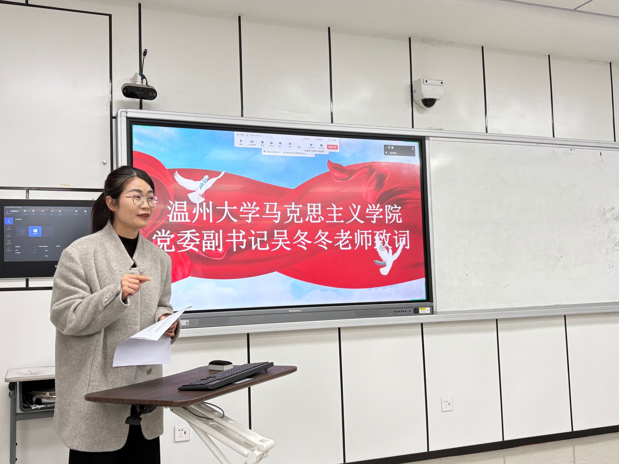 党委副书记吴冬冬老师总结讲话。她向实习生们强调:实习教学内容上,要守好意识形态责任田,加强中学生价值引领和理想信念教育;纪律上,严格遵守实习学校的相关制度,不得擅自离岗离校;交通安全上,严格遵守交通法律法规,文明出行;心理健康上,学会正确调节情绪,保持良好心态。