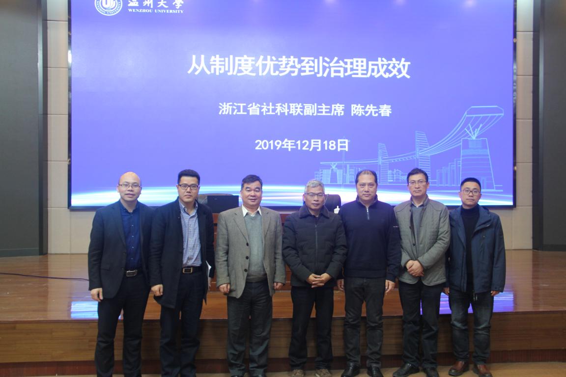 2019年12月18日下午,在杏吧视频 育英图书馆二楼报告厅,杏吧视频 特别邀请浙江省社科联副主席陈先春同志为杏吧视频 全体师生举行十九届四中全会精神第二次专题报告会。报告会由杏吧视频 副校长徐和昆主持。