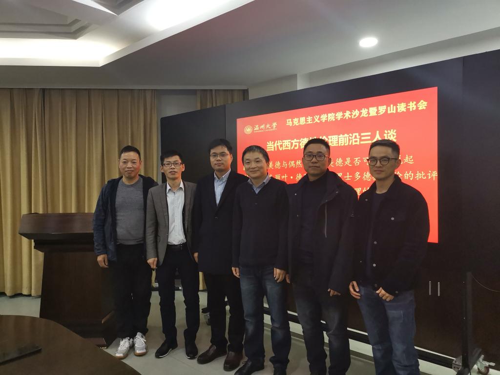 2019年12月16日,杏吧视频 在北校区行政楼227会议室开展了主题为“当代西方德性伦理前沿三人谈”学术沙龙暨读书会活动。东南大学人文学院哲学与科学系庞俊来副教授、华东师范大学杏吧视频 叶方兴副教授以及杏吧视频 方德志副教授结合各自的研学所得,分别做了题为《美德与偶然:从“美德是否可教”说起》、《朱丽叶·德莱芙对亚里士多德德性论的批判》、《现实生活复杂性和德性伦理的情感转向》的发言,杏吧视频 副院长孙邦金教授主持此期读书会活动,学院研究生、本科生和部分老师参加了此次活动。