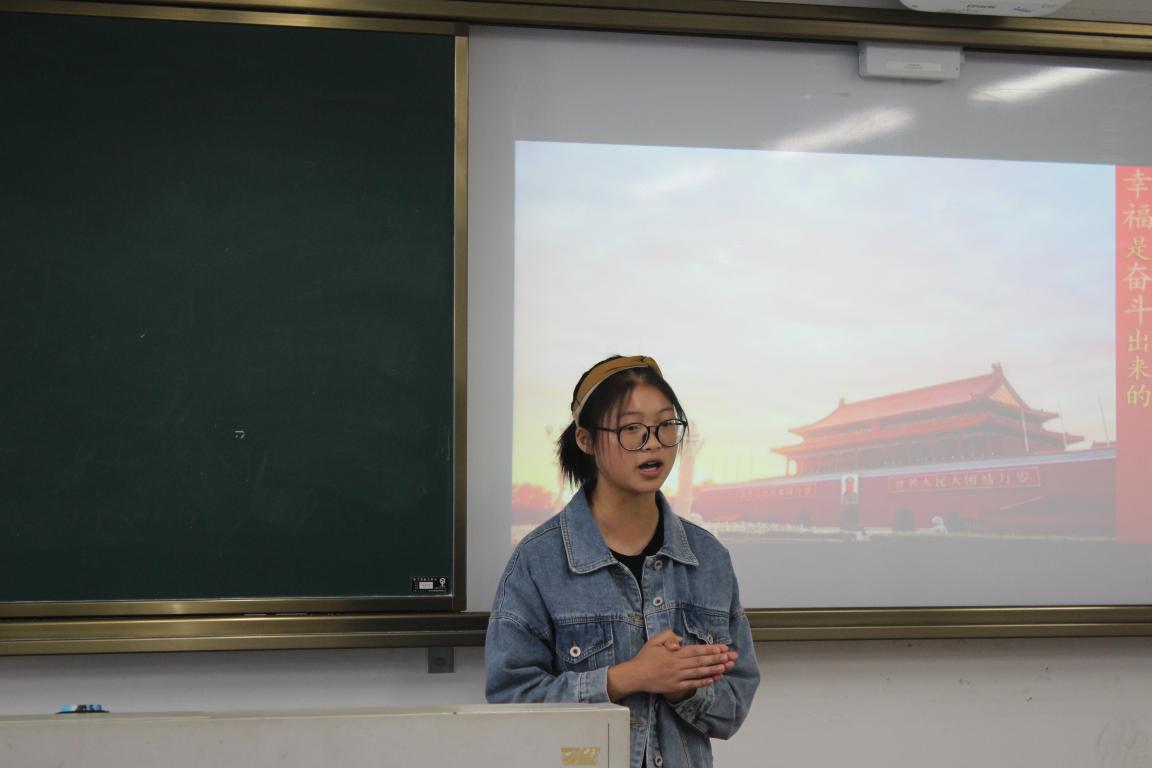 选手们的言语掷地有声,表达流畅,展现了青年的朝气蓬勃,还有选手在现场唱起“长江,长城,黄山,黄河,在我心中重千斤”,也别是一番风采。18级的鲍寒卉同学讲述了近七十年以来的教育变化,自祖辈到自身,自小学学历便是稀奇到大学学历是标配、考研读博是常见现象的变化,由此可见,我国在教育事业上确实有了极大的进步;19级陈可可同学的演讲让人印象深刻,国学经典信手拈来且恰到好处,用“腹有诗书气自华”形容她是再适合不过了,她带大家回顾了中国过去的苦难,人民以血与泪的代价走过了一路坎坷,才使得中国在如今的新挑战前自信坚定屹立,扶摇直上九万里的气魄长久地盘旋于我们心中;最后上场的18级陈嘉滢同学也是不负众望,她的表现让人眼前一亮,从2019年的阅兵式追溯到1959年的阅兵式,讲述了其爷爷的人生选择:带着热血与感动毅然参军,让全世界看到了中国翻天覆地的变化。