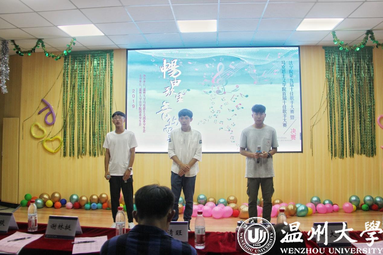 马院共有五组选手进入决赛。19政本的俞梅佳同学作为马院第一位上场的歌手,为大家带来了歌曲《走在冷风中》,其动听的歌声和精彩的表现赢得了场下观众的热烈掌声。紧接着,18政本的黄旖宁同学用澄澈透亮的嗓音带来一首《房间》,俘获了评委和听众的心。18政本的吴雨琦同学的歌声仿佛在诉说一个故事,一首《体面》娓娓道来。还有马院的唯一的男声组合——来自19政本的Triple L组合选择了一首能够引起大家共鸣、勾起大家回忆的电视剧主题曲《此生不换》,将全场的气氛推向了高潮,带来了一波“回忆杀”。最后登场的19政本的郏丽莎同学,为大家演唱了一首经典歌曲《水调歌头》,其轻浅的歌声让人心醉。