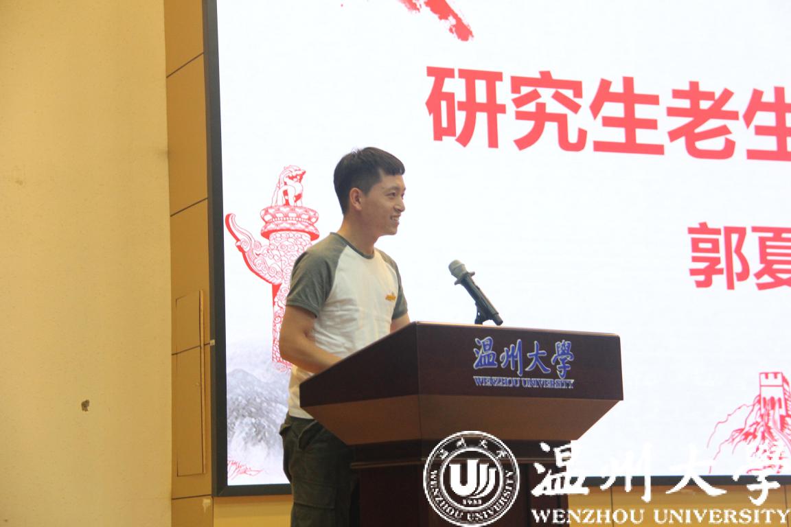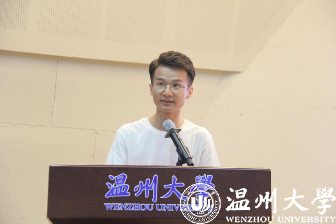 研究生新生代表张剑宇同学向在场师生讲述了有关他在温大的求学经历并提出作为一名研究生更是要具备探求真理的能力,拥有于社会实践生活中寻求真理的意识,树立于人云亦云中排解非议的信心。他坚信同学们只要敢于有梦、勇于追梦、勤于圆梦,终能等到梦圆时刻。