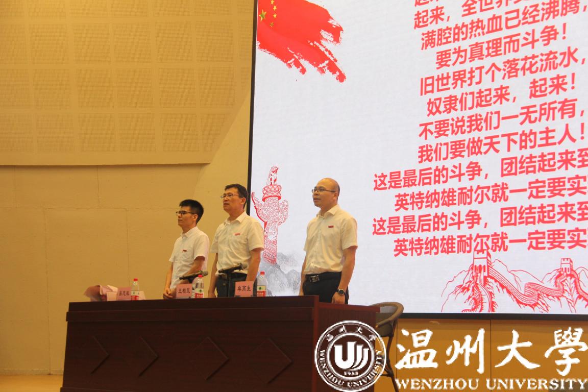 全体师生起立,奏国际歌