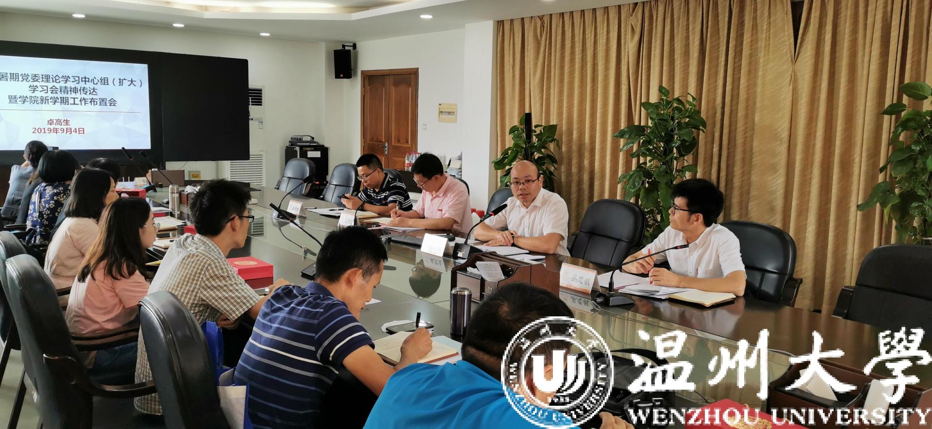 卓高生院长传达了暑期校党委理论中心组(扩大)学习会的会议精神。全体教师围绕校党委书记谢树华同志《锚定三大目标 实施七大战略 推动跨越发展》的学校发展战略主题报告进行了认真学习。通过学习,全体教师进一步明晰了学校“具有鲜明特色的高水平综合性教学研究型大学”的办学定位,对学校在新时代确立的创建“省市共建”省重点校、“升博”、以侨为特色的“省部共建”高校的“三大目标”给予了高度认可,全院教师要主动对应“质量立校、科研兴校、人才强校、依法治校、学科带动、学城联动、党建引领”的“七大战略”要求,将自身发展与学校发展相结合。