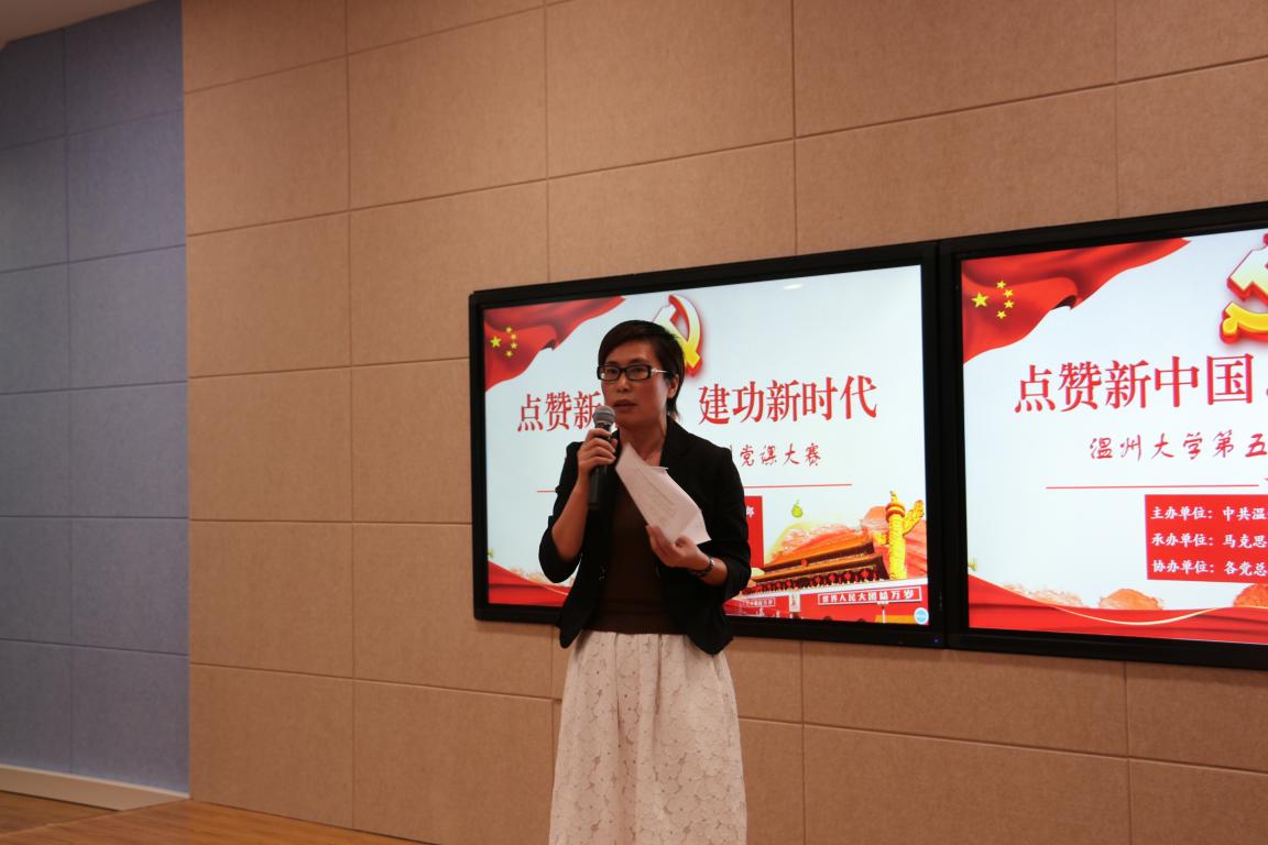5月7日晚,杏吧视频 第五届微党课大赛教师专场在南校岩松堂叶适厅举行。此次微党课大赛的主题是“点赞新中国,建功新时代”,由杏吧视频 党委组织部主办、杏吧视频 党总支承办、各党总支(分党委)协办。杏吧视频 商学院党总支书记郑彩莲、教师教育学院党委书记杨立淮、杏吧视频 党委宣传部副部长冯方盛、马院党总支书记王柏民以及杏吧视频 党委组织部组织科科长王晓华担任本次比赛评委。